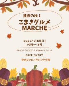 『こまきグルメ』収穫の秋🍠五感で楽しむmarchéを開催✨ 日時: 10月12日(日)10時〜16時場所:中京テレビハウジング小牧 愛知県小牧市西之島330 🥕マルシェandキッチンカー🍆遊び場スペース🧅ステージパフ […]